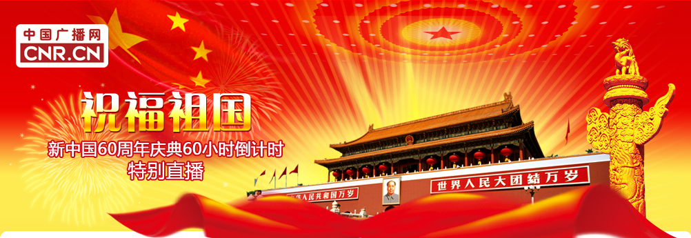 主持人:中央人民廣播電臺中國之聲新中國成立六十周年慶典60小時倒計時特別直播:《祝福祖國!》正在進行。今天做客直播間的嘉賓是:中國文聯演藝中心主任、著名歌唱家郁鈞劍。【視頻:中國經濟的貢獻大家有目共睹】
