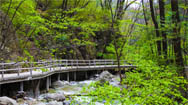 牛背梁國家森林公園設在柞水縣境內,距西安不過70公里,這里又會成為西安人的一處福地。園內森林茂密,潭溪清幽,樹木花草遍布林間。山里氣溫低,還在初春時,只見翠綠層層,山花點點,流水潺潺,青崖怪石,峽谷深幽,空氣清新,沁人心脾,在平整的人行步道,拾級而上,恍如步入仙境一般,十分愜意。