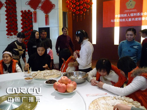 中廣網北京1月25日消息(記者王淑娟實習記者張雪)大紅的窗花貼起來,喜慶的燈籠掛起來。除夕的中國康復研究中心歡歌笑語,暖意融融。中國殘疾人福利基金會、首都各界愛心人士、醫務工作者和正在這里康復治療的汶川地震災區的孩子們一起貼窗花、包餃子,度過了一個喜慶的團圓年。