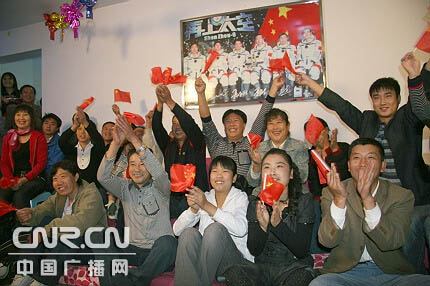 今天一清早,翟志剛的家人們就歡聚一處,焦急地等待收看當天晚上新聞發布。當翟志剛和另兩位入選航天員出現在電視上時,家人們不停揮舞著手里的國旗,齊聲呼喊:“志剛加油!”翟志剛的大哥翟志強說:“我非常高興,我們全家人都為他驕傲。‘神七’升天是中國航天史上的大事。我們全家都祝愿他們能順利升空,實現在太空行走的夢想,我們期待著他們平安返回。”