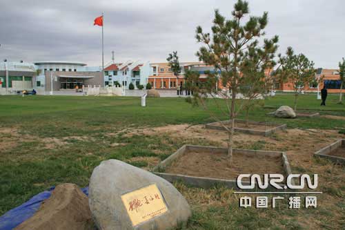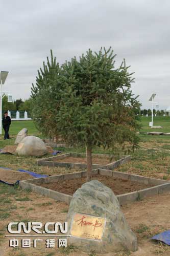 問天閣前莊嚴(yán)的五星紅旗后方一片不大的草坪上,赫然擺放著一塊刻有“中國航天員紀(jì)念林”幾個紅色大字的石頭,由楊利偉、費俊龍、聶海勝等親手栽種的紀(jì)念樹生機盎然。