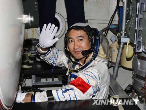 9月27日,中國人首次進行太空行走,翟志剛被確定為出艙航天員。這是翟志剛準備進入神舟七號返回艙訓練(資料照片)。新華社發(秦憲安攝)