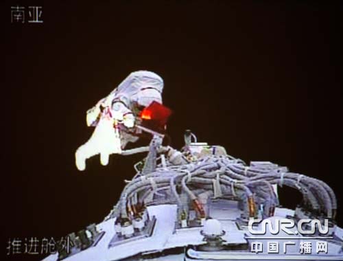 組圖:翟志剛走出艙外開(kāi)始實(shí)施出艙活動(dòng)