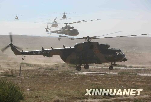 9月26日,在內(nèi)蒙古四子王旗神舟七號飛船主著陸場,空中搜救分隊的直升機轉(zhuǎn)場至回收任務(wù)待命區(qū)。 新華社記者 王建民攝