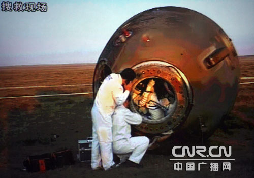 9月28日,飛船返回艙成功著陸。(中廣網記者南光 曹囡囡攝)