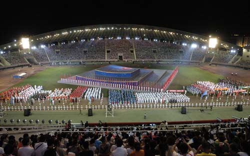 8月16日拍攝的內蒙古自治區第十二屆運動會開幕式現場。