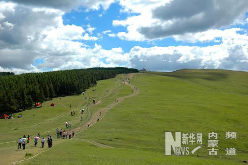 8月15日,游客在位于呼和浩特市郊的圣水梁草原觀光。新華社記者 劉勇貞 攝