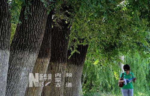 一位扎蘭屯市民在綠樹成蔭的街頭行走(8月10日攝)。內蒙古扎蘭屯市位于大興安嶺腹地,這個城市在發展中把綠化城市放在工作首位,城區綠地覆蓋率達到36.2%,百年以上大樹超過400株,人均綠地達到10平方米。優美的人居環境讓這里被外來游客譽為“北國小蘇杭”,2009年扎蘭屯接待來自全國各地的游客超過90萬人次。新華社記者 李欣 攝