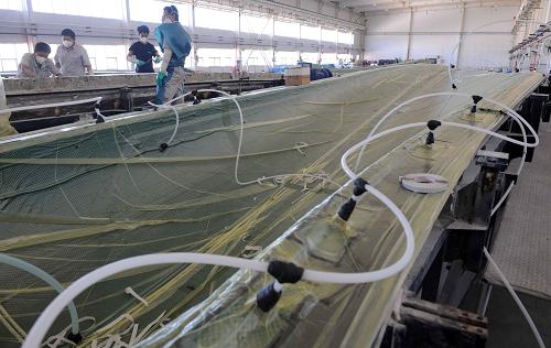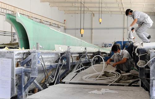 8月6日,國電聯合動力技術赤峰有限公司工人在松山區工業機械加工園車間制作模具。西部大開發十年來,內蒙古風電產業發展迅猛,致力打造“風電三峽”,建設輻射首都北京的綠色能源大區和能源戰略儲備基地。截至2010年初,內蒙古自治區風力發電裝機容量突破500萬千瓦,到“十二五”末,風電裝機容量將達到2000萬千瓦。新華社記者張領攝
