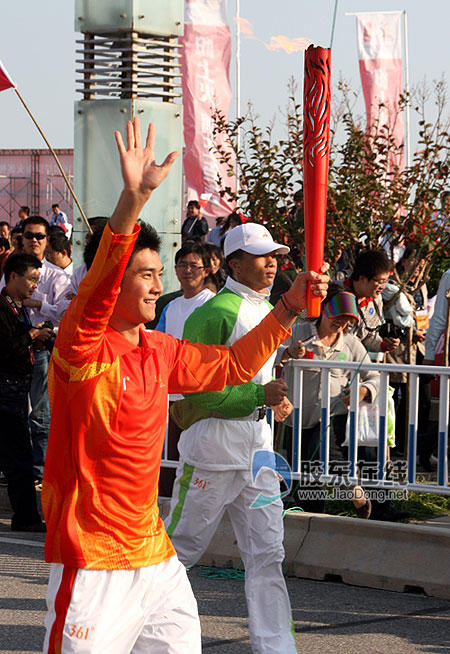 邢傲偉擔(dān)任亞運(yùn)會(huì)火炬?zhèn)鬟f海陽站首棒