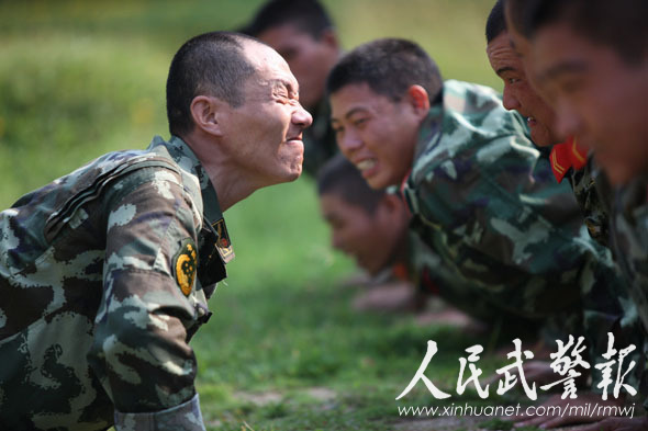 體能訓(xùn)練,常跟戰(zhàn)士比一比 圖片來源:人民武警報
