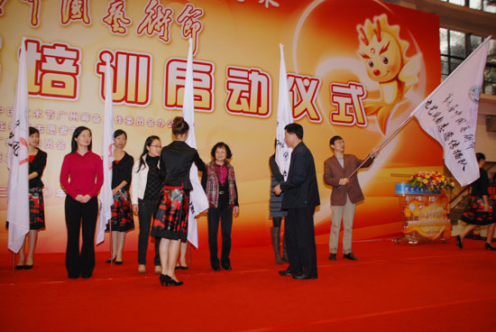4月15日,由“九藝節(jié)”廣州籌委辦、第16屆亞運(yùn)會組委會志愿者部、共青團(tuán)廣州市委主辦的“賞藝術(shù)風(fēng)韻,展志愿風(fēng)采”——第九屆中國藝術(shù)節(jié)志愿者招募培訓(xùn)啟動儀式在華南師范大學(xué)隆重舉行。“九藝節(jié)”廣州籌委辦主任、廣州市文化廣電新聞出版局局長陸志強(qiáng),“九藝節(jié)”廣州籌委辦常務(wù)副主任、廣州市文化廣電新聞出版局副局長張潤華,團(tuán)市委副書記、亞組委志愿者部副部長魏國華等領(lǐng)導(dǎo)出席了啟動儀式。啟動儀式由團(tuán)市委學(xué)校少年部部長葉興仁主持,團(tuán)市委副書記魏國華致辭,陸志強(qiáng)局長作動員講話。