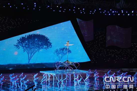 5月9日晚,第九屆中國藝術節開幕晚會“中國盛典”在廣州市體育館進行了首次帶妝聯排。圖為彩排現場。(中廣網記者時晨 攝)
