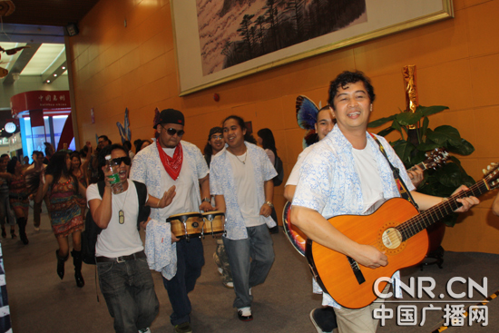 圖為“演交會”上邊奔跑邊高歌的樂隊組合。(中廣網記者時晨 攝)