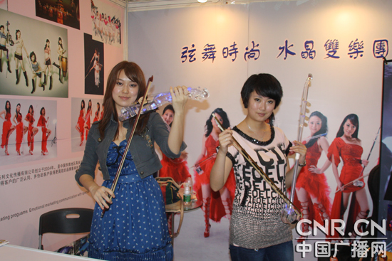 圖為“演交會”上演奏水晶樂器的美女。(中廣網記者時晨 攝)