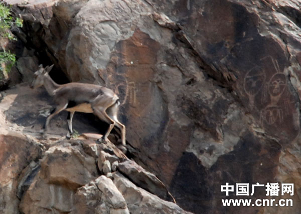 巖羊信步于巖畫間(攝影 馬玲艷)
