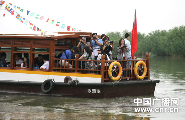 網絡媒體行的記者參觀沙湖。(攝影 馬玲艷)