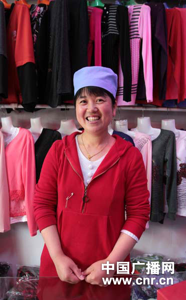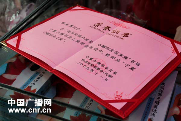 趙萍算是這條街的領軍人物之一。回族婦女向來是主持家務,贍老扶幼。20多年前,她頂著世俗的壓力,在丈夫的支持下開始干些“拋頭露面”的事情。她和想法一致的姐妹們一塊商量,把大伙刺繡的作品繡好后交給她們統一出售。這項回族婦女的傳統工藝不僅受到了消費者的青睞,也給她們賺回了大把的票子。正是在一些人的冷嘲嘲諷中,“趙萍們”掘得了人生的第一桶金,每天幾塊錢的收入也會讓她們欣喜若狂。她們不斷擴大自己經營范圍,從外地購進回族群眾喜愛的帽子、頭巾、成衣、布匹等進行銷售。漸漸地,越來越多的姐妹們加入了她們的行列。她們的陣地,也由以前的擺攤設點發展到店鋪經營。回族婦女擺來英的服裝店每年年收入都在3、4萬元吶。