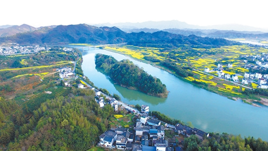 9月26日,記者來到雄村鎮雄村村。清澈的新安江水繞村流淌,徽派風格的村落點綴在江邊,青山綠意,古樹翠竹,粉墻黛瓦,略帶滄桑的古民居、古牌坊倒映水中,儼然一幅水墨山水畫。