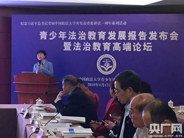 央廣網北京4月17日消息(記者孫瑩)中國政法大學青少年法治教育中心今天在京發布了《我國青少年法治教育發展報告(2018)》,報告數據顯示,近年來我國的青少年法治素養和中小學的法治教育工作取得了長足進步,仍有若干不足。中國政法大學校長黃進、司法部法治宣傳司副司長劉漢銀在致辭中均表示,此報告對于全面了解、客觀評估我國青少年法治教育現狀,未來有針對性地對我國青少年進行法治教育,提高公民法治素養非常有借鑒價值。