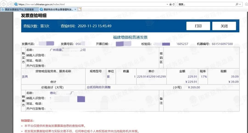 法官范米多告訴記者,隨著法院調查的深入,發現當事人提交的證據有問題。范米多說:“我們法院經審理發現,當事人在復審期間提交的發票證據與國家稅務總局全國增值稅發票查驗平臺查詢結果不一致,具體表現在商品名稱、商品品牌、銷售方及納稅人識別號等信息與實際不符。”