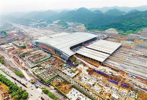 近日,重慶西站鐵路綜合交通樞紐工程正在緊張施工。該項目分兩期建設,今年底一期工程將與渝黔鐵路同步建成投用。2019年底項目全部建成后,將實現軌道、公交、出租車等多種交通方式零距離換乘,預計客流量將達4218萬人次/年。 記者 羅斌 攝