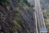 2月7日,在重慶市黔江區細塘灣山,中國鐵路成都局集團公司涪陵工務段黔江危石整治工區工人在處理危石。新華網發(楊敏 攝) -