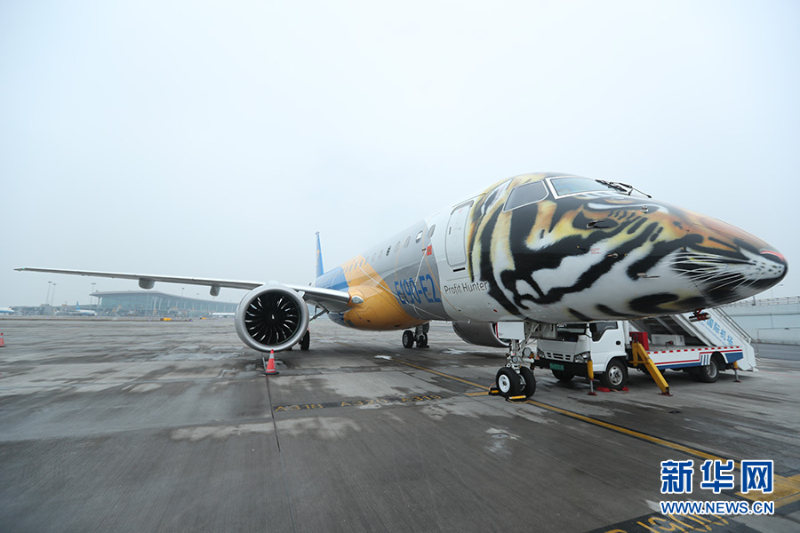 2月12日早上08:30分,一架外觀噴涂為老虎的巴西航空工業ERJ-190-E2客機降落重慶江北國際機場,在經過近3小時停留加油后,于11:16分安全起飛前往哈薩克斯坦。據了解,這次停留主要是給飛機補充燃油。飛機從新加坡起飛,經停重慶“吃飽喝足”后,飛往哈薩克斯坦阿拉木圖進行下一站演示。新華網發(重慶江北國際機場供圖) -
