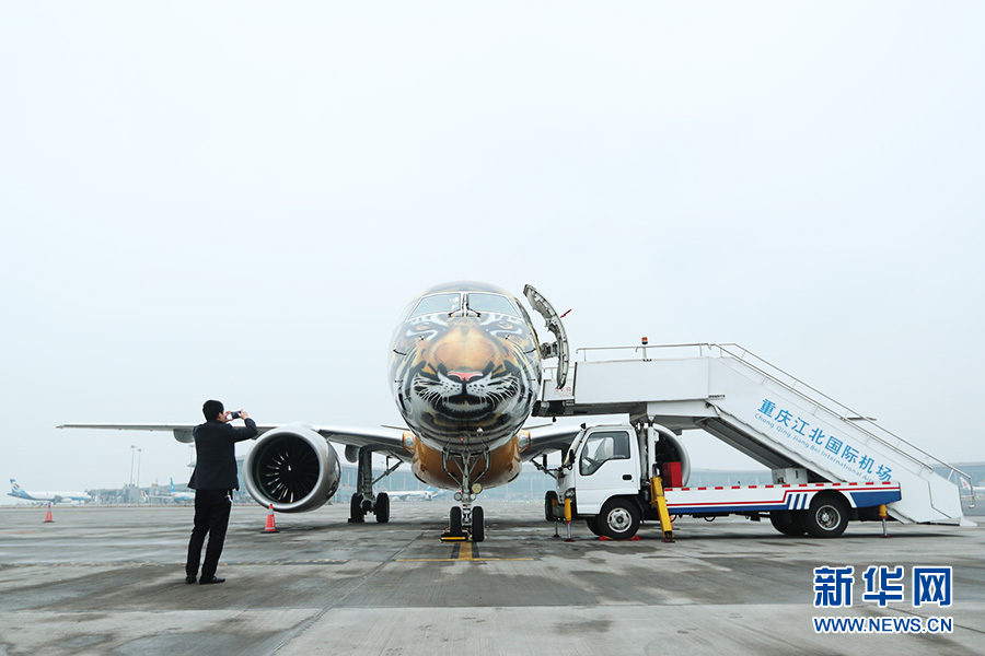 2月12日早上08:30分,一架外觀噴涂為老虎的巴西航空工業ERJ-190-E2客機降落重慶江北國際機場,在經過近3小時停留加油后,于11:16分安全起飛前往哈薩克斯坦。據了解,這次停留主要是給飛機補充燃油。飛機從新加坡起飛,經停重慶“吃飽喝足”后,飛往哈薩克斯坦阿拉木圖進行下一站演示。新華網發(重慶江北國際機場供圖)