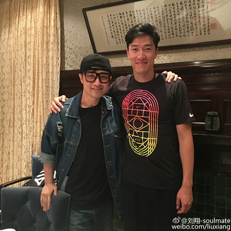 古巨基劉翔同框搞怪 送中秋月餅顯兄弟情深