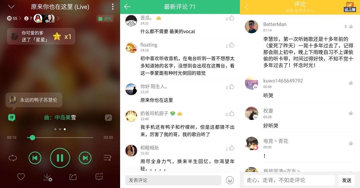 此外,代表一段華語經典時代、好久不見的李慧珍和蘇慧倫的成功揭面也被網友稱“有時光倒回的錯覺”。重新拿起話筒,李慧珍用一首《追夢赤子心》訴說了淡出歌壇的這些年是如何因為音樂而執著重生,歌聲中飽滿的能量與感動,也觸動到了大家內心的柔軟,更有酷我音樂網友追憶起第一次聽李慧珍歌曲的情景,感嘆時光流逝,關于李慧珍的相關歌單也來到了QQ音樂的專題推薦。