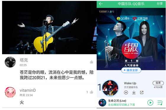 在首期節(jié)目中,樂(lè)隊(duì)推薦人陳偉倫帶著自己的樂(lè)隊(duì)、以一首《如夢(mèng)令》先行東道之禮,中西樂(lè)器加上古風(fēng)與電音的碰撞,為李清照的這首經(jīng)典詞牌注入了全新的生命力。而其強(qiáng)大的音樂(lè)創(chuàng)造力也讓不少網(wǎng)友表示欽佩,在QQ音樂(lè)更有“技術(shù)帝”犀利指出這首歌所融入的“迷幻、雷鬼、電子、新民樂(lè)”四種編曲元素,表示陳老師太牛了。隨后,由化身“中國(guó)樂(lè)隊(duì)音樂(lè)調(diào)頻”DJ的譚維維親自找尋樂(lè)手的尼瑪樂(lè)隊(duì)用藏語(yǔ)驚艷開(kāi)唱。在傳承西藏傳統(tǒng)音樂(lè)的基礎(chǔ)上賦予了音樂(lè)現(xiàn)代化、國(guó)際化的色彩,尼瑪樂(lè)隊(duì)的《生命之河》無(wú)論是在歌藝還是在表演形式上都完美詮釋了“民族的就是世界的”。對(duì)于這樣一首洗滌心靈之作,酷狗音樂(lè)的網(wǎng)友也盛贊“雪山之下,天籟之音”,“這聲音就像大自然在訴說(shuō)自己”。
