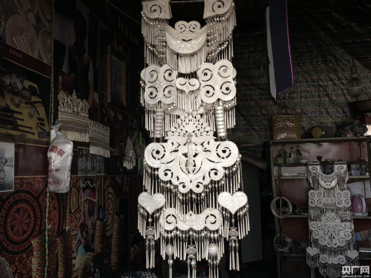 在國家級非物質文化遺產傳承人勒古沙日家的銀飾店的墻上,琳瑯滿目的飾品,讓人看了眼花繚亂。勒古沙日家已經經歷了十五代傳承,在當地有著不小的名氣。為了將這項技藝傳承下去,勒古沙日還熱心的去教授弟子。近年來,他教的徒弟數不清,僅在布拖有嚴格師承關系的徒弟就有30多個,而且還協助他們開了自己的銀飾店。