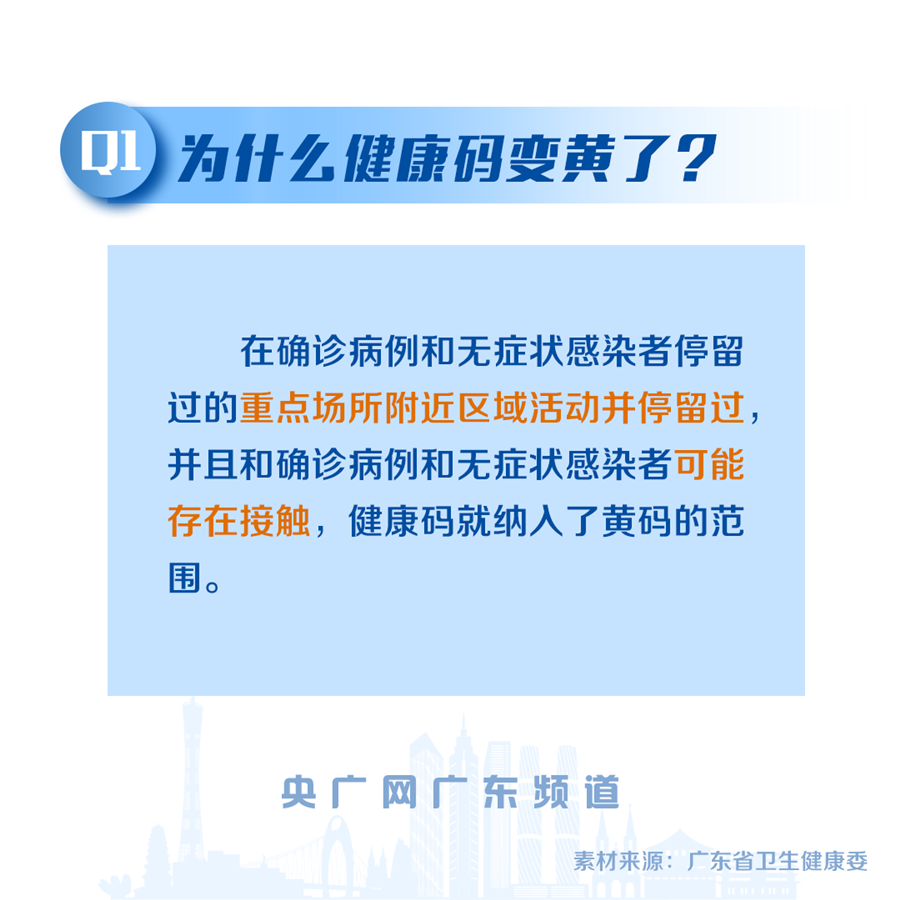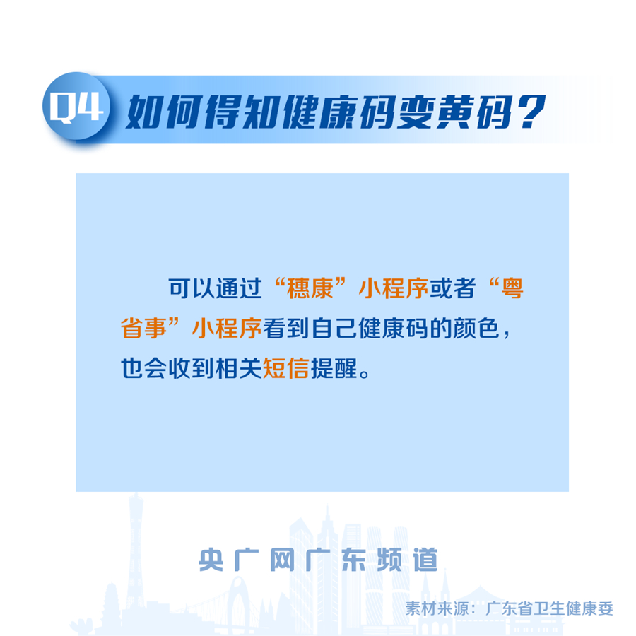 廣東省新冠肺炎防控指揮辦疫情防控組回應,近期廣州、深圳、佛山等地發生本土疫情,為減少人員流動帶來的風險,對于防控區域涉及的重點人員中未按要求完成核酸檢測的人員,健康碼賦黃碼,適當限制流動。