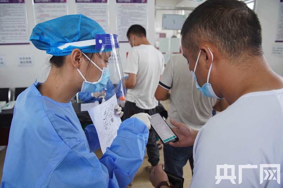 醫護人員正在登記司機信息。(央廣網記者 官文清攝)