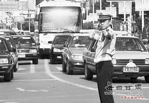 7月20日,蘭州市迎來了入夏以來的最高氣溫35℃。在一線工作的交警、公交司機等堅持在高溫下工作,為大家服務。記者 張鐵梁 攝