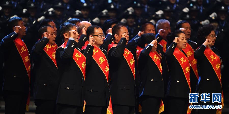 •      4月25日晚,退休民警在榮譽退休儀式上重溫入警誓詞。新華社記者 陳斌 攝