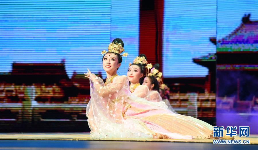 7月4日,甘肅省歌舞劇院的演員在開幕式上表演舞蹈《霓裳羽衣舞》。7月4日晚,中國·韓國友好周活動在甘肅省蘭州市開幕。新華社發(張睿 攝)
