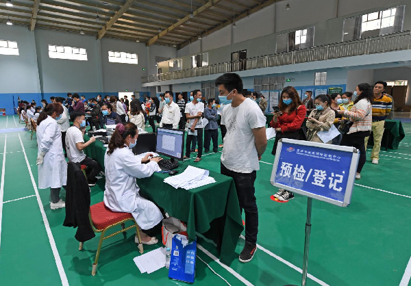 憑祥市大規(guī)模新冠疫苗接種點(diǎn)(央廣網(wǎng)發(fā) 龐立堅(jiān)攝)