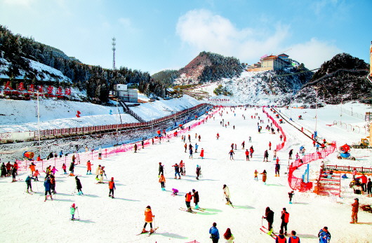 六盤水梅花山國際滑雪場吸引大量游客前來體驗雪上飛舞的浪漫。郭君海 攝
