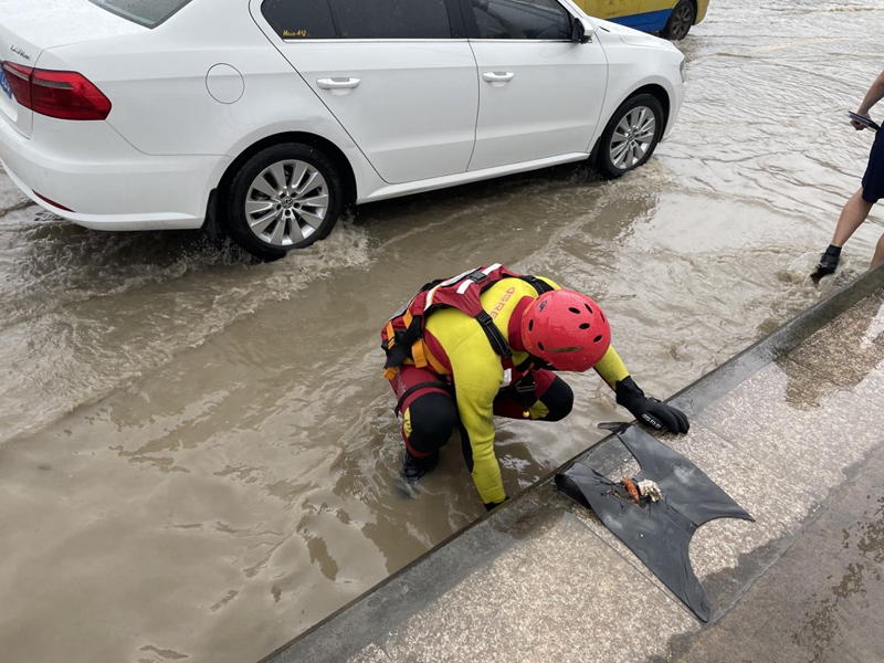 強降雨產(chǎn)生的垃圾雜物將思南縣一橋排水口堵塞,導(dǎo)致積水過多,嚴重影響交通。消防指戰(zhàn)員快速搜尋排水口,清理堵塞垃圾,經(jīng)過45分鐘的救援,所有排水口疏通完畢,成功排除橋面積水;在思南烏江大道,由于積水嚴重,消防指戰(zhàn)員到場后打開下水道井蓋,利用城市排水系統(tǒng)進行排水,同時利用架設(shè)手抬機動泵,進行城市排澇。目前,排澇工作仍在進行中。