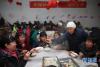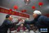 2月21日,在河北石家莊平山縣卷掌村活動(dòng)中心,村民們使用長筷子吃餃子。當(dāng)日,河北省石家莊市平山縣卷掌村舉行“幸福餃子宴”活動(dòng),餃子宴上的筷子長達(dá)42厘米,人們只有互相喂食才能方便地吃到餃子,百余名村民在互助互愛中分享快樂。新華社發(fā)(王偉倩 攝) -