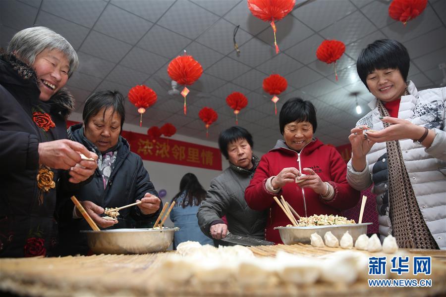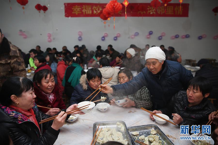 2月21日,在河北石家莊平山縣卷掌村活動(dòng)中心,村民們使用長筷子吃餃子。當(dāng)日,河北省石家莊市平山縣卷掌村舉行“幸福餃子宴”活動(dòng),餃子宴上的筷子長達(dá)42厘米,人們只有互相喂食才能方便地吃到餃子,百余名村民在互助互愛中分享快樂。新華社發(fā)(王偉倩 攝)