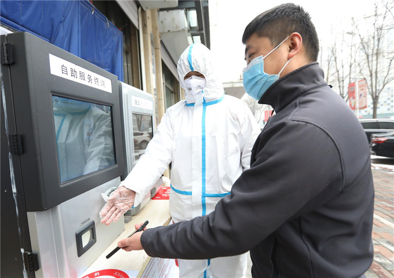 在固安縣新昌街百川燃?xì)鉅I業(yè)點(diǎn),社區(qū)代辦員通過自助終端設(shè)備為群眾代買天然氣(央廣網(wǎng)發(fā) 門叢碩 攝)