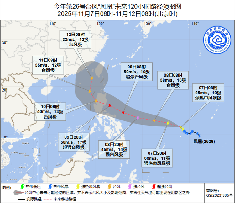 “鳳凰”11月7日8時預報路徑圖(央廣網發 海南省氣象臺供圖)
