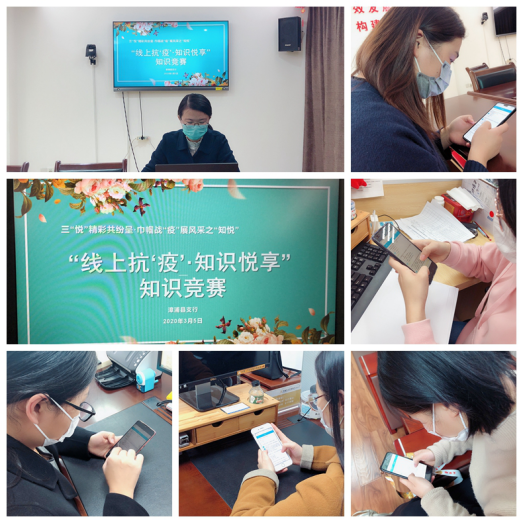 抗“疫”正當時!在女職工們在這場特殊的戰“疫”中主動擔當作為、發揮各自作用的同時,引導她們主動增強防護意識,了解疫情防控知識是堅守崗位的女同志們最大的保護,也是對抗擊新冠疫情、促進經濟發展工作最大的支持。支行利用網絡微信平臺成功舉辦“線上抗‘疫’·知識悅享”競賽,全體女職工均參與其中。此次競賽引導職工們學習分享防疫小知識,檢測她們對這次新冠病毒的防控知識掌握程度。同時,支行領導也提醒女職工們要“合理飲食、規律作息、適度鍛煉,提高自身免疫力”,以科學的態度認識和對待疫情,互相關心、互相鼓勵,做好防護,堅定戰勝疫情的信心。