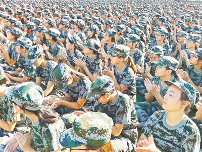 民警為正在軍訓(xùn)的大學(xué)新生進(jìn)行反欺詐教育