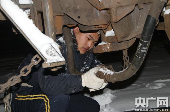 在繁忙的除雪打冰現場,不少職工衣服被汗水浸透結冰,襪子和鞋子被雪水打濕,突擊隊員毫不退縮,奮力拼搏,確保鐵路大動脈安全暢通。(通訊員周云龍)