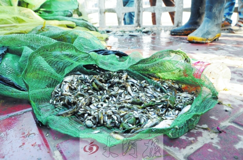 五六名巡防隊員來到河邊后,立即著手將這些地籠打撈上來。打撈的結果讓眾人大吃一驚,每道地籠里除了五六條稍大的鯽魚、鯉魚外,其他都是小魚蝦,有的僅有指甲蓋長,最長的也不過一寸。