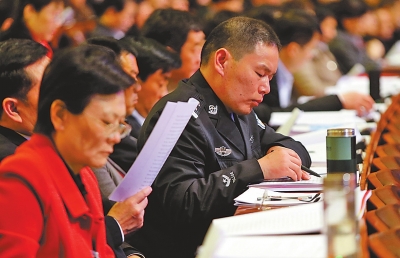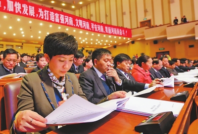 據河南日報報道: 1月16日上午,出席河南省十二屆人大三次會議的代表們認真聽取政府工作報告。 (記者 郭宇 史長來 攝)